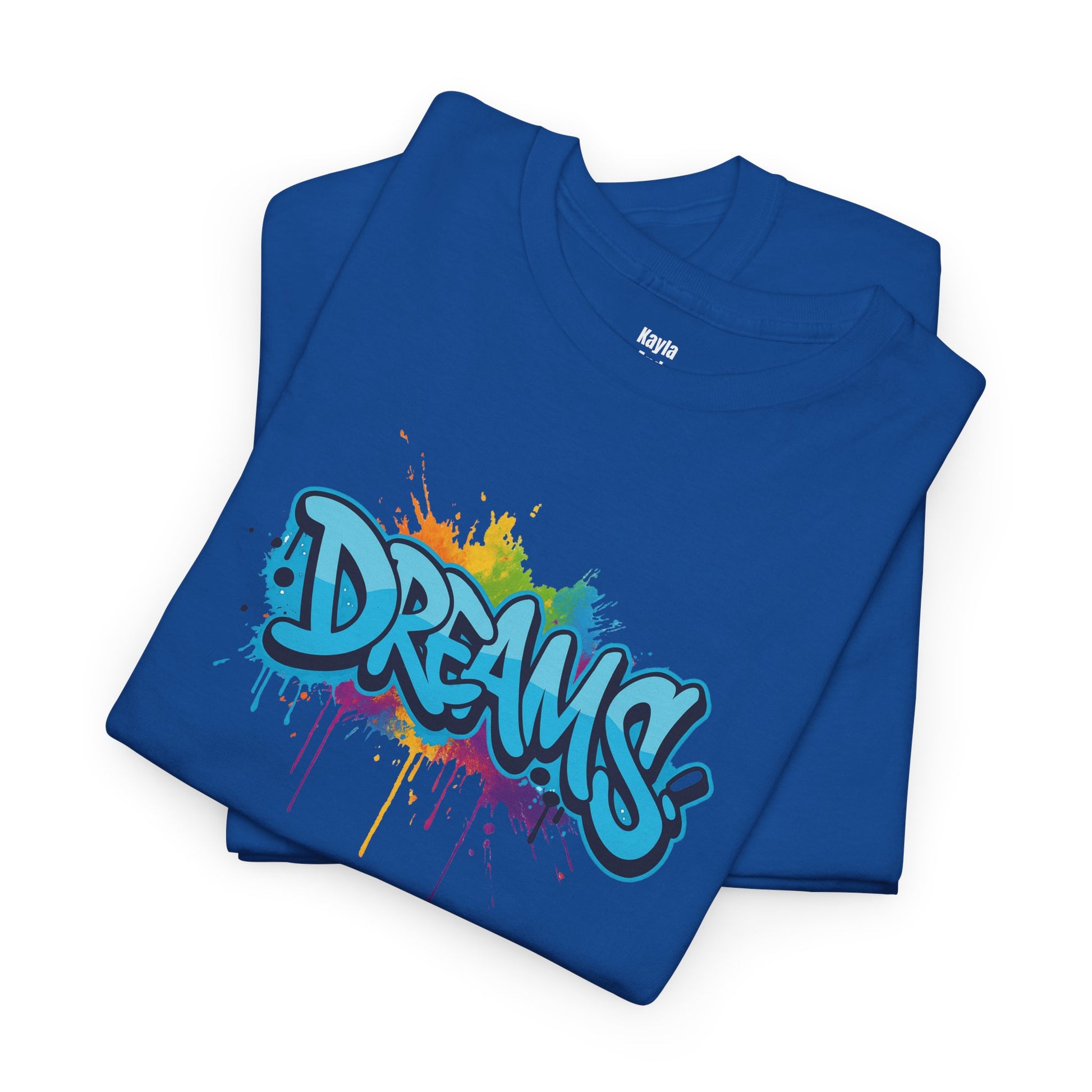 This "DREAMS" Graffiti T-shirt is a vibrant, wearable mantra for anyone who believes in the magic of alignment. Inspired by the journey of letting life shift you into beautiful new directions, this tee is a colorful symbol of trusting the intangible process and never giving up on creating the life of your dreams.