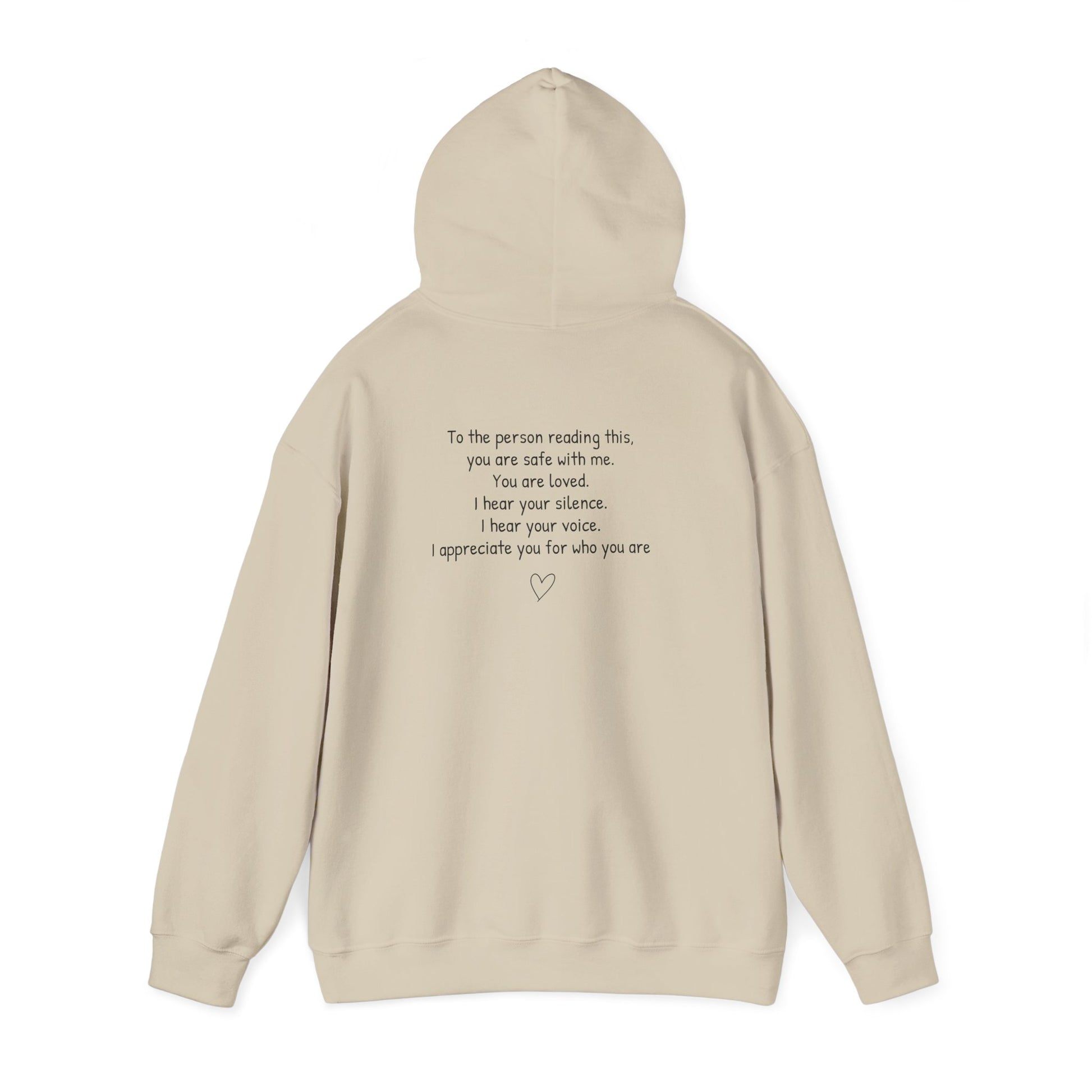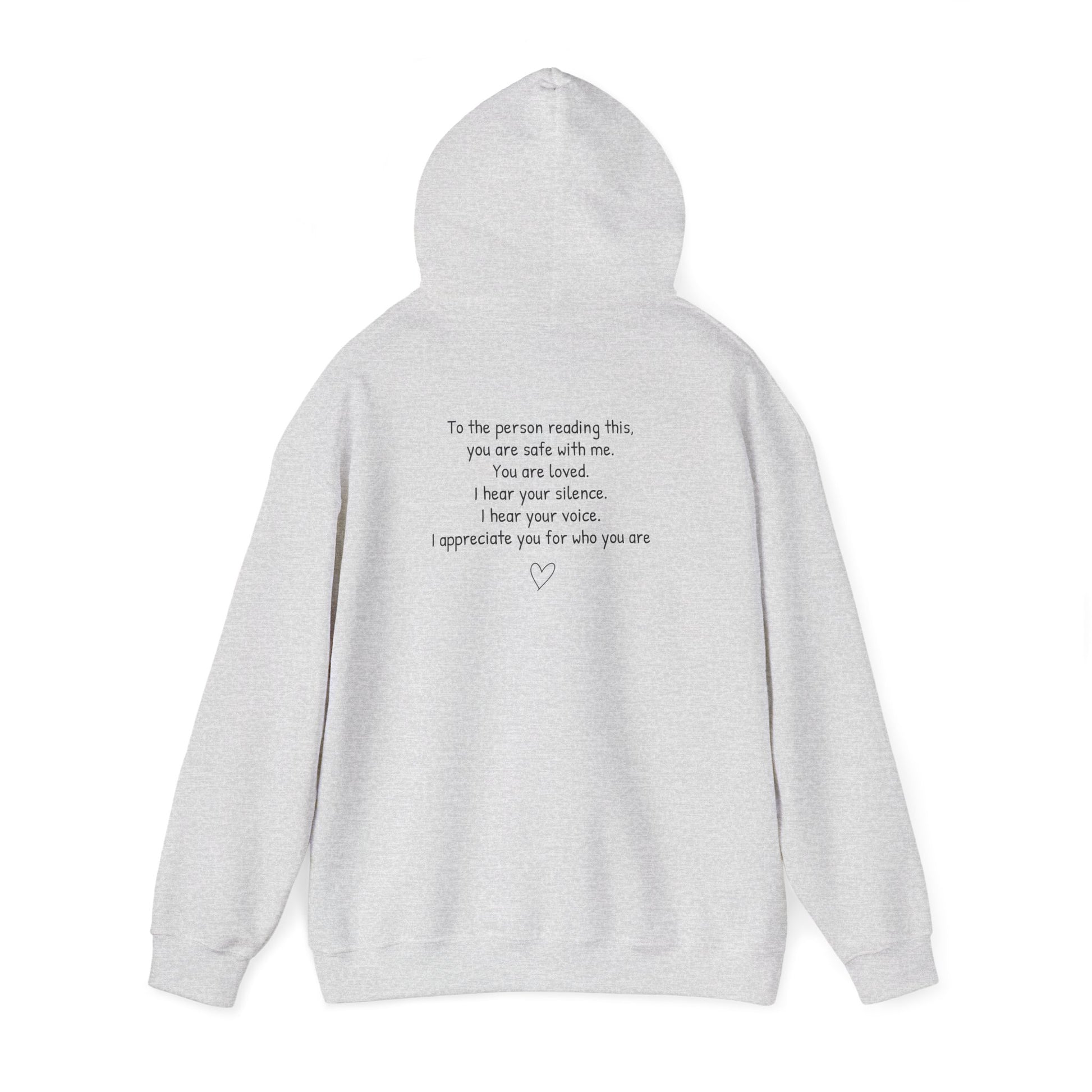 SAFE PLACE Hoodie – “To the person reading this, you are safe with me” Mental Health Sweatshirt